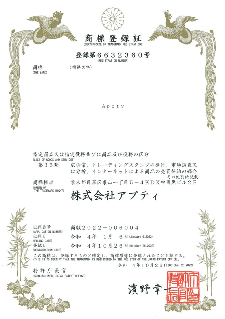 ・Apoty(登録番号:第6632360号 / 第6583730号)