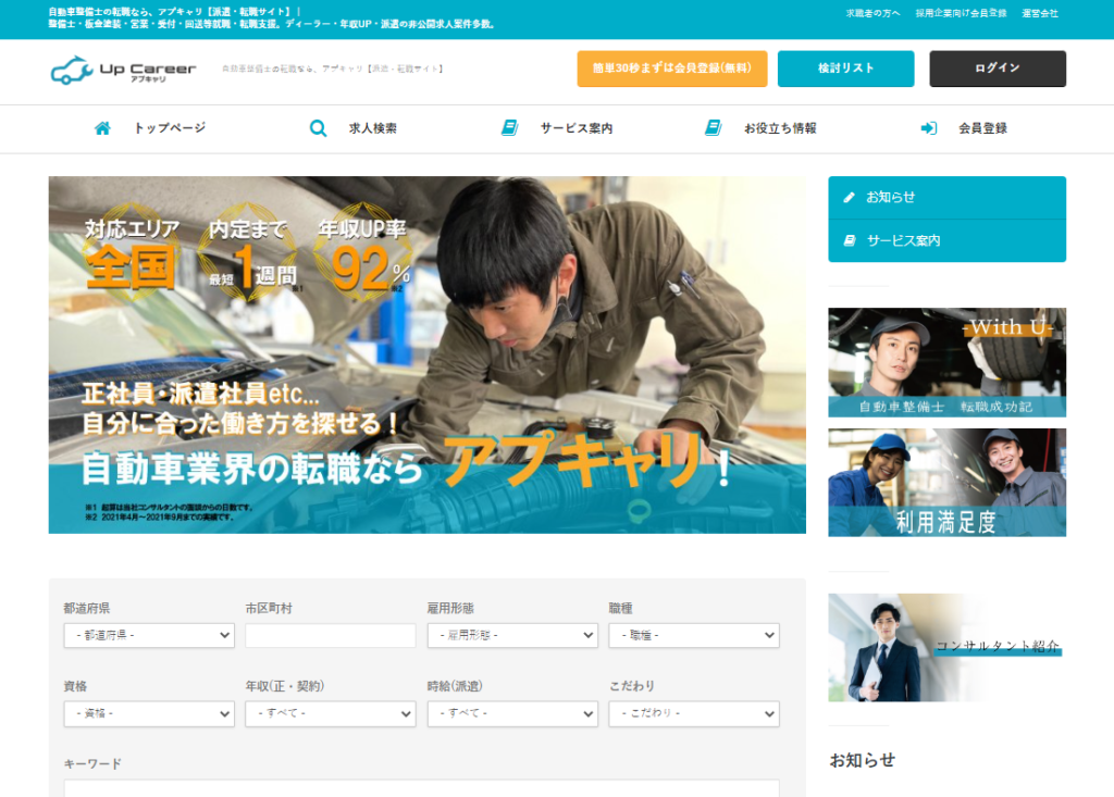 当社が2019年8月より運営している自動車業界専門転職サイトです。全国を対象に、高い専門性を有しているコンサルタントが、自動車業界への転職、業界内での転職をフルサポートするサービスです。